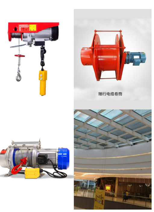 商場用電動提升機(jī):現(xiàn)在每個商場基本都會使用商場廣告吊鉤,而這些廣告吊鉤大多是安裝在商場中庭邊緣的,通過導(dǎo)向輪把鋼絲繩引導(dǎo)過去然后垂下吊鉤,這樣在需要更換條幅的時候就只要輕輕一按,就可以放下吊鉤更換條幅了。