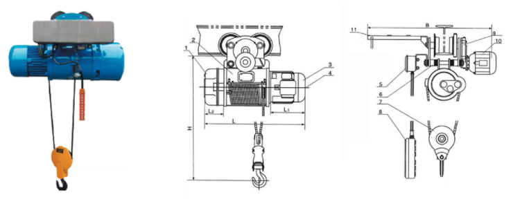 BPCD、BPMD型系列電動(dòng)葫蘆技術(shù)性能和外形尺寸參數(shù)(0.25T-20T)